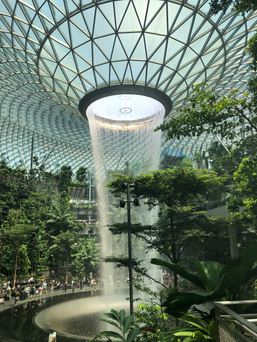 We visited the Jewel Mall, one of the popular tourist attractions in Singapore. The mall was a marvel of modern architecture, and I was amazed by its beauty. We had lunch there and took a few snaps before proceeding to the gate for our flight to Jakarta. The flight was scheduled for 3 PM, and I was nervous about the journey ahead. However, I was comforted by the presence of the Indonesian people and felt more secure.